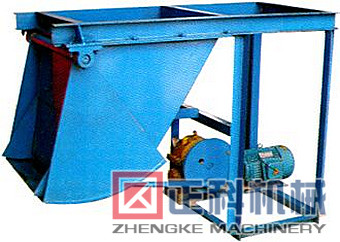 当电动机启动后,其动力通过三角带,传递到减速器减速。经减速的动力传递到可调偏心距的偏心轮(给矿量的大小则要调节偏心轮的位置)再由偏心轮通过连杆,驱使摆底板作往复弧形摆动,从而使给料口周而复始的开启闭合,位于给料机上方矿仓的矿石,通过给料机机体内腔由给料口,一次次匀速的排出机外,确保球磨机均匀地给料生产。